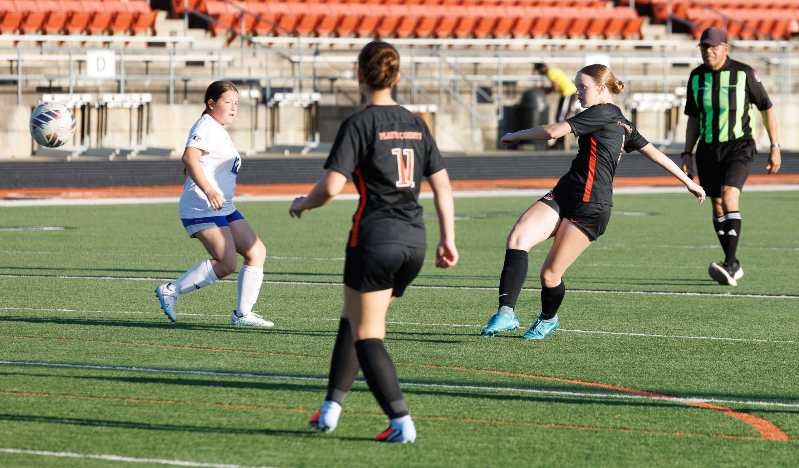 Platte County junior Agum Nak started at goalkeeper and did not face a shot despite the starting defensive back line of Dixon, Fadler, Addison Linn and junior Caroline Linn receiving the majority of playing time in the attack. Midfielders and even forwards rotated back as part of the continued growth for a youthful roster building back after a slow start to the season.